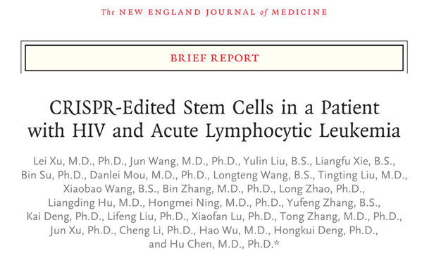 该临床试验利用CRISPR基因编辑技术,在人成体造血干细胞上进行CCR5基因编辑,实现了经基因编辑后的成体造血干细胞在人体内长期稳定的造血系统重建。然后对一名患艾滋病和急性淋巴细胞白血病的27岁男性进行治疗。治疗后病人的急性淋巴白血病达到形态上的完全缓解,病人的T细胞呈现一定程度上对HIV-1病毒的抵抗能力,且未发现脱靶效应和副作用。