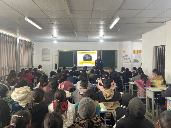 上好“心理辅导第一课”。民警通过幽默有趣、简单易懂的小故事和生活案例,分享自我调节心理的方法,开展情绪疏导,缓解学习压力的同时,帮助大家保持乐观开朗的心态。