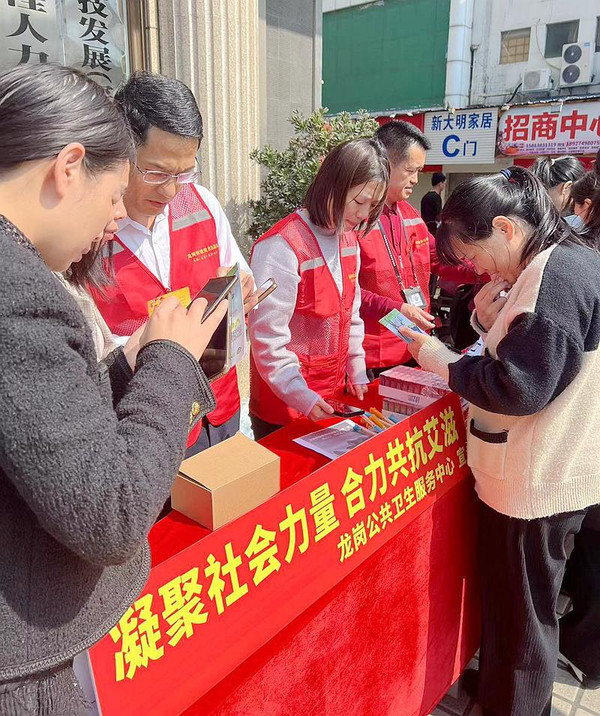 日前,龙岗公卫中心聚焦人力资源市场这一人群聚集领域,针对春节后企业招聘热潮这一时间节点,在新路程人力资源市场开展了一场全面且深入的艾滋病防治宣传活动。