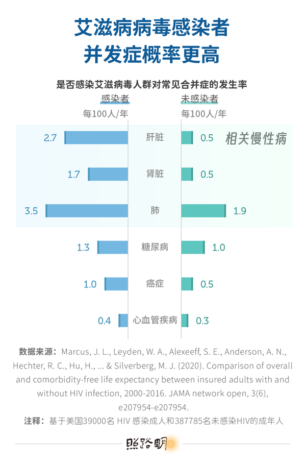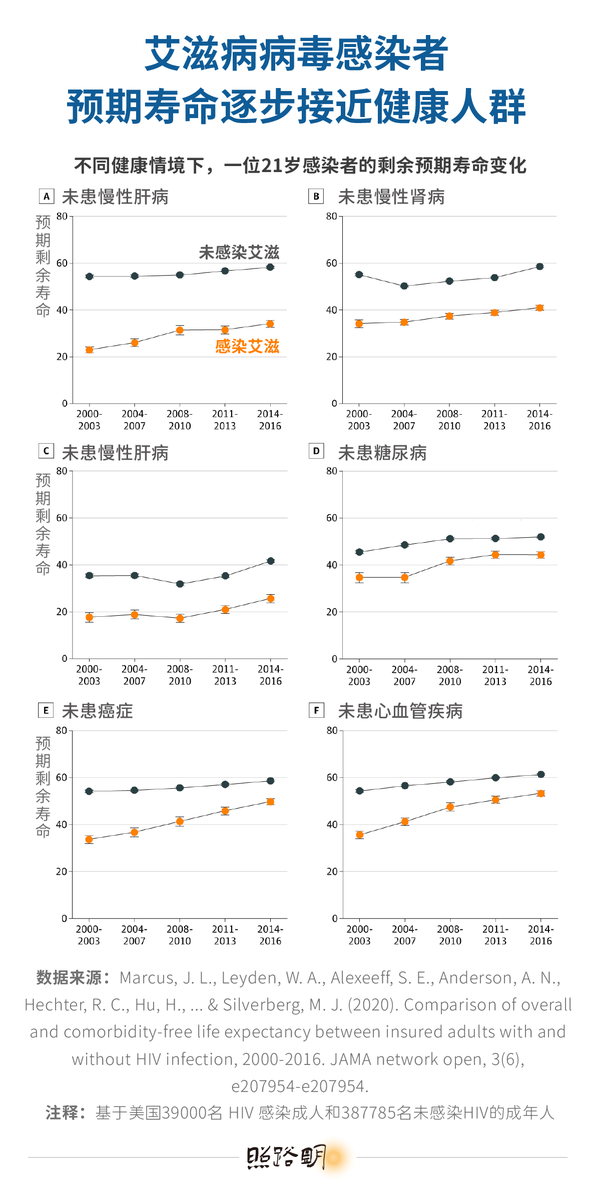[5]Marcus, J. L., Leyden, W. A., Alexeeff, S. E., Anderson, A. N., Hechter, R. C., Hu, H., ... & Silverberg, M. J. (2020). Comparison of overall and comorbidity-free life expectancy between insured adults with and without HIV infection, 2000-2016. JAMA network open, 3(6), e207954-e207954.