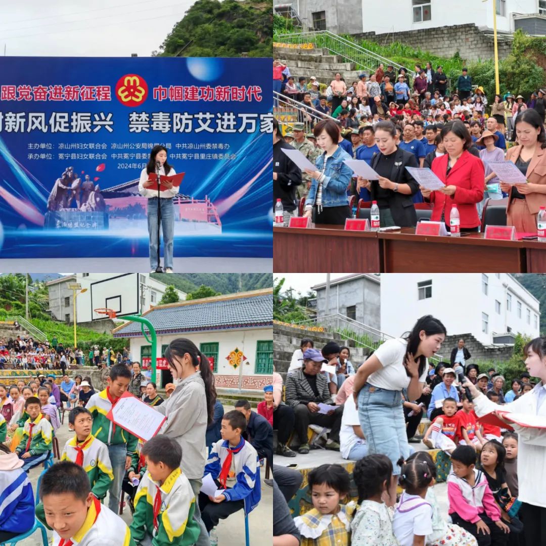 为深入贯彻落实习近平总书记关于禁毒工作的重要指示精神,全面落实中央和省委禁毒工作部署,进一步深化2023至2025年禁毒防艾三年攻坚行动以及州禁毒办《关于印发《州委禁毒委成员单位2024年度挂包帮扶禁毒重点(巩固)乡镇(街道)工作方案》的通知》(凉禁办发2024年9号)文件要求,6月25日,由凉山州妇女联合会、凉山州公安局锦屏分局、中共凉山州委禁毒办联合主办,冕宁县妇女联合会、中共冕宁县委禁毒办、中共冕宁县里庄镇委员会承办的主题为“树新风促振兴· 禁毒防艾进万家”的禁毒宣传教育活动在冕宁县里庄镇拉开帷幕,此次活动旨在用形式多样、寓教于乐的方式,深入浅出的向广大妇女儿童及家庭宣传禁毒、止毒、防毒的相关知识。
