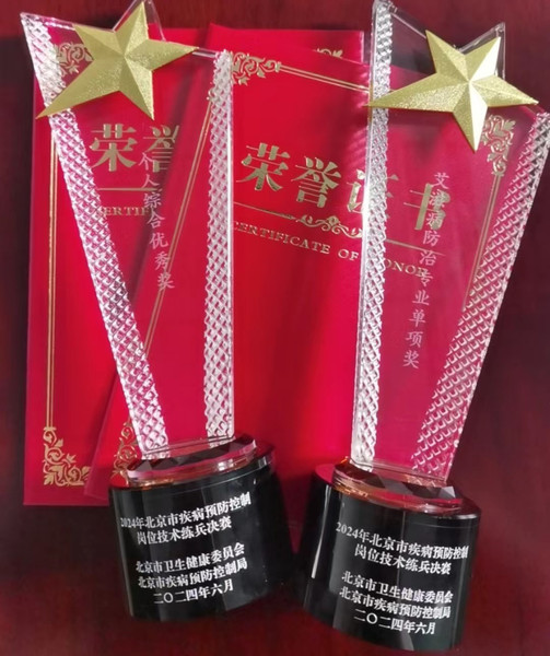 由北京市卫生健康委员会、北京市疾病预防控制局组织举办的北京市疾病预防控制岗位技术练兵个人决赛于6月22日在北京市疾控中心南院举行。为贯彻落实《北京市疾病预防控制岗位技术练兵实施方案》,提高本中心从业人员知识储备及突发事件应急处置能力,性病艾滋病防科经过科室及辖区内选拔,选派张曦月同志参加此次全市技术大练兵个人决赛。此次竞赛分为笔试和技能两部分,其中笔试部分由6大专业(传染病防控、艾滋病防治、结核病防治、免疫预防、卫生应急、消毒和病媒生物防制专业)组成,技能操作部分分专业进行。经过1天的角逐,张曦月同志在此次比赛中表现优异,分别获得了个人综合优秀奖和艾滋病防治专业单项奖。