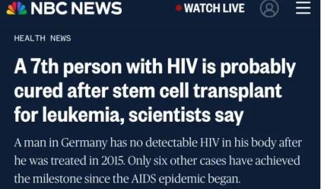 7月18日,美国国家广播公司记者Benjamin Ryan报道了全球第7例HIV治愈病例。