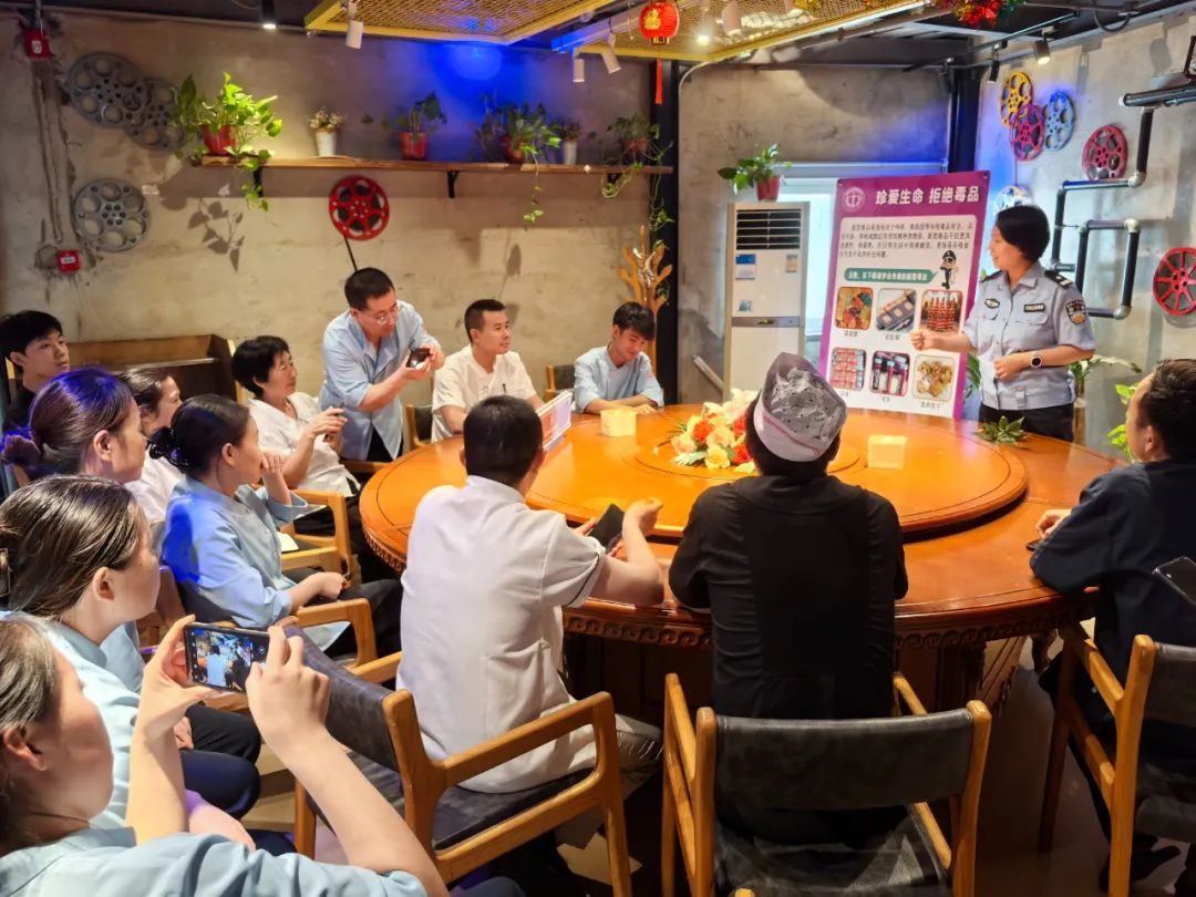 恰逢立秋时节,我们不仅追求舌尖上的享受,更要守护心灵与身体的健康。近日,西城区广安门内街道禁毒工作站联合北京市天康戒毒康复所走进辖区餐饮场所,开展”舌尖上的禁毒 保护您的味蕾”系列禁毒宣传活动。旨在让禁毒意识深入人心,守护大家的健康生活。
