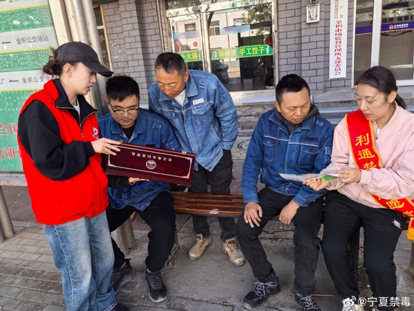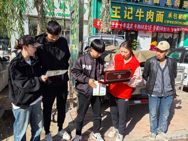 近日,金积镇社区戒毒(康复)中心的工作人员在辖区内 “走街串巷”,向过往群众以及沿街商铺宣传禁毒知识,掀起了秋季禁毒宣传的一波小高潮。