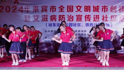 “艾滋防治靠大家,健康生活你我他!”11月1日晚,兴宾区迎宾广场传来一阵清脆的快板声,2024年来宾市全国文明城市创建主题服务暨艾滋病防治宣传进社区活动正在此举办,歌声、笑声与掌声此起彼伏,交织出一幅文明与健康的美好图景。