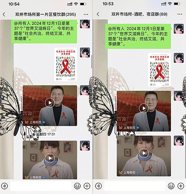 世界艾滋病日宣传期间,朝阳区市场监督管理局充分利用官方微信、微博进行第37个“世界艾滋病日”宣主题传。各市场所也通过电子显示屏、网络社交平台等电子媒介进行广泛宣传。