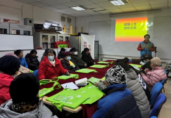 禁毒社工在活动现场的大屏幕上打出“健康人生 绿色无毒”的标语,为前来参加活动的老人们分享禁毒知识,提醒老人们在年底与新年到来之际,提高警惕,防毒防骗。