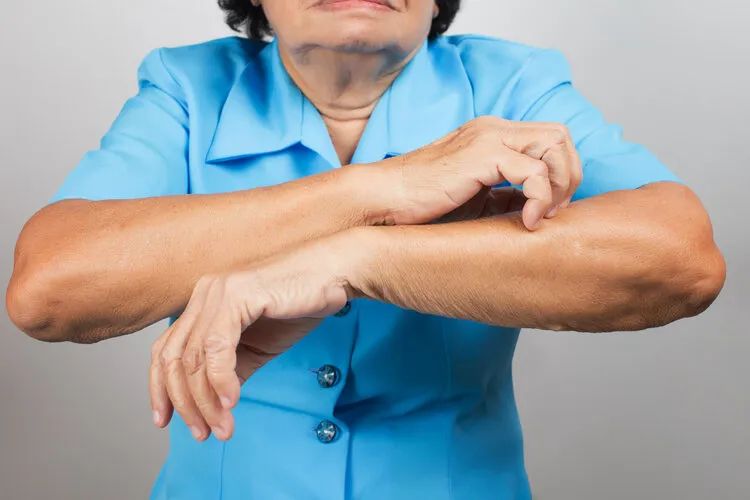 一般是阵发型的,患者会感到强烈的瘙痒,控制不住的搔抓,导致皮肤皮损,留下很多抓痕和血痂。