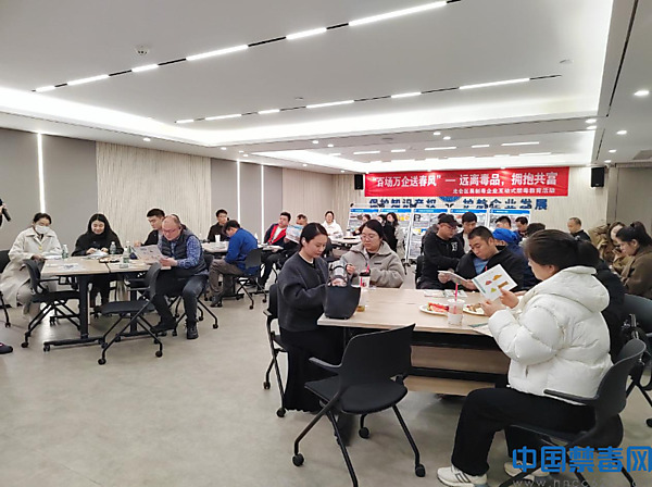 图为禁毒宣传活动现场。中国禁毒网发 活动结束后,企业代表将分发的禁毒宣传折页纷纷带给同事和家人,愿以今日所学惠及亲友,进一步扩大禁毒知识覆盖面,加深了本次活动的意义。