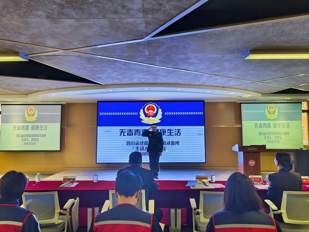 最后,省成都强戒所“成戒 绿舟”禁毒防艾法治宣传服务队还为同学们带来了禁毒防艾知识讲座,深入浅出地给同学们普及了毒品知识,介绍了毒品的种类、特征以及新精神活性物质的识别方法,通过真实案例深入剖析了吸食毒品对个人身体、家庭和社会造成的严重后果与危害。