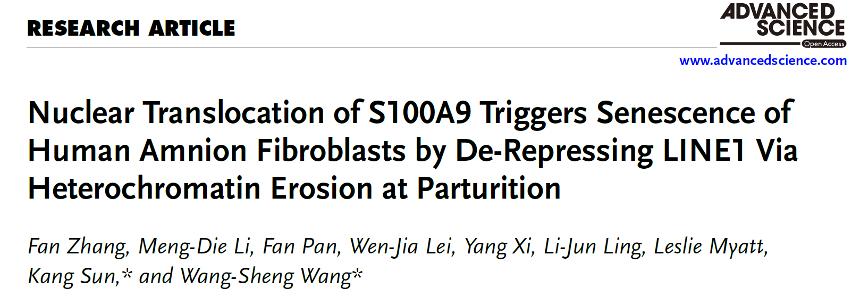 研究团队发现,在分娩过程中,一种名为S100A9的蛋白质发生了“身份转变”——它去磷酸化后从细胞浆“搬进”细胞核内,并通过与特定蛋白合作,开放了细胞核内异染色质的“基因锁”。这种变化导致原本被严格管控的转座子元件(LINE-1)大量表达,从而通过Ⅰ型干扰素反应启动细胞的衰老机制,促使胎膜细胞进入衰老状态并释放炎症信号,最终推动分娩进程。