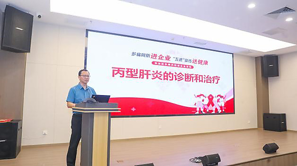随后,解放军总医院第五医学中心丙肝科副主任、主任医师纪冬带来丙肝防治专题讲座。他结合临床案例讲解肝脏功能、丙肝传播途径及“早检测、早诊断、早治疗”的核心原则,针对“日常接触是否传染”“丙肝能否治愈”等居民关心的问题逐一解答,帮助大家建立科学认知。