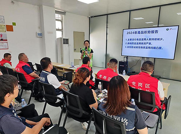 为进一步加强基层禁毒工作力量,提升网格员和楼栋长识毒、防毒、拒毒能力,充分发挥其作为禁毒“前哨”的信息员作用,近日,深圳市龙岗区龙岗街道在街道综治中心组织开展禁毒知识专题培训活动,来自辖区的30名网格员和楼栋长参加培训。