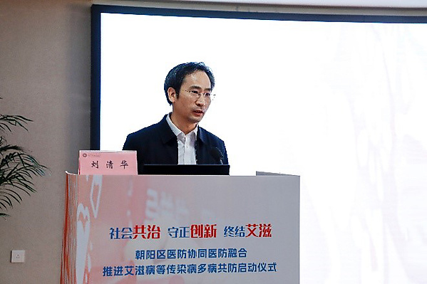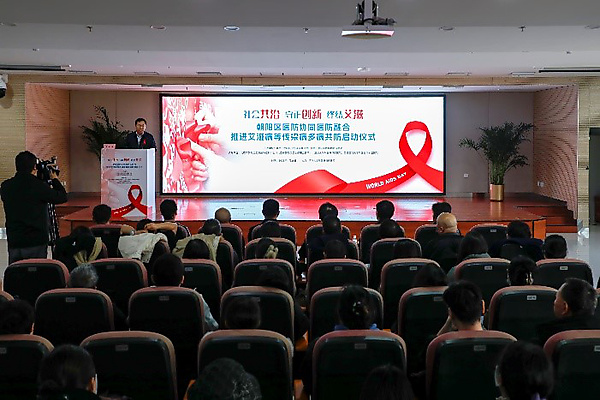 2025年11月26日,在第38个世界艾滋病日到来之际,朝阳区在清华大学附属垂杨柳医院举办宣传活动,活动主题为“社会共治,守正创新,终结艾滋——朝阳区医防协同医防融合、推进艾滋病等传染病多病共防”,活动由北京市朝阳区卫生健康委员会、北京市朝阳区疾病预防控制局主办,北京市朝阳区疾病预防控制中心(北京市朝阳区卫生健康监督所)、清华大学附属垂杨柳医院、首都医科大学附属北京地坛医院共同承办。市疾控局副局长刘清华、区委卫健工委书记周长春、地坛医院党委书记潘峰、市疾控中心副主任贺晓新、区卫健委副主任、区疾控局局长李炬、中国疾控中心性病艾滋病预防控制中心副研究员李培龙、垂杨柳医院党委书记吴兴海、区疾控中心(区卫生健康监督所)党委书记齐啸等领导,以及朝阳区试点社区卫生服务中心相关领导出席活动。活动由吴兴海主持。