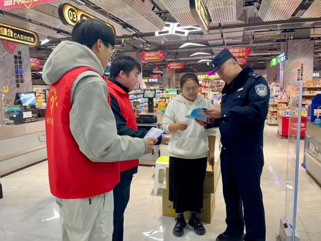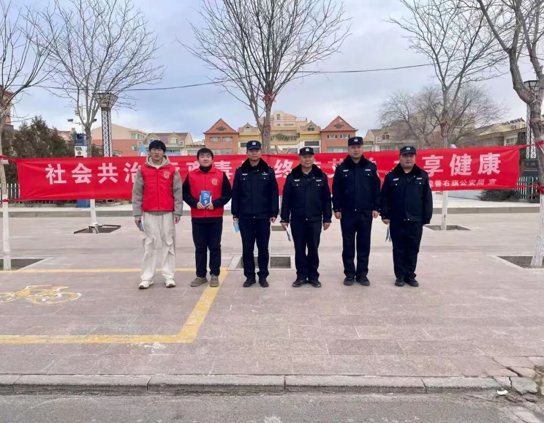 禁毒民警辅警与志愿者流动宣传小队,深入巴丹吉林镇药店、超市等人群聚集处进行“敲门宣传”。