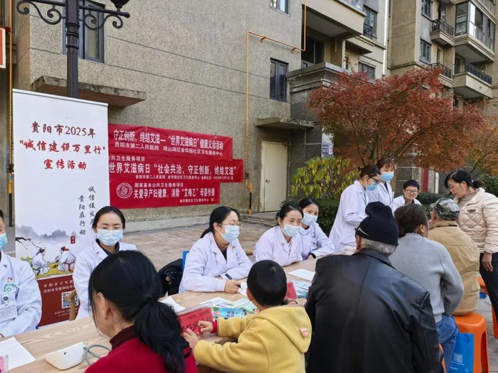 每年的12月1日是“世界艾滋病日”,今年是第38个“世界艾滋病日”。为响应国家艾滋病防治号召,切实普及艾滋病防治知识,增强公众防艾意识与自我保护能力,消除社会歧视,12月1日,贵阳市第二人民医院(金阳医院)宣传科组织皮肤科、感染性疾病科、疼痛科和金华园社区卫生服务中心在观山湖区恒大中央公园C区金枫社区儿童之家门口举办了主题为“社会共治,守正创新,终结艾滋”的健康义诊宣传活动,旨在为市民提供专业、便捷的医疗咨询与健康服务,营造全民参与艾滋病防治工作的良好氛围。