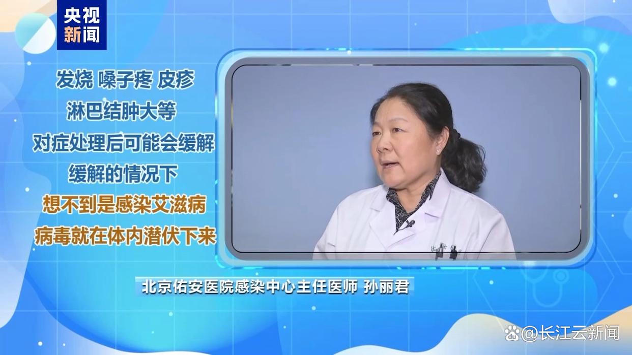北京佑安医院感染中心主任医师 孙丽君:比如说有些人发烧、嗓子疼,还有一些皮疹、淋巴结肿大等等,这些如果对症处理的话,可能它自然而然就缓解了。你可能想不到你是感染了艾滋病,病毒在体内就潜伏下来了。