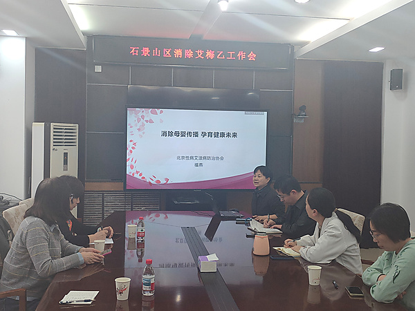 为深入贯彻落实《消除艾滋病、梅毒和乙肝母婴传播行动计划(2022—2025年)》和《北京市消除艾滋病、梅毒和乙肝母婴传播行动计划实施方案》要求,进一步提高社会组织参与消除艾梅乙母婴传播工作能力,北京性病艾滋病防治协会、石景山区疾病预防控制中心、石景山区妇幼保健院以及石景山区各社会组织于2025年12月10日在石景山区疾控中心召开了社会组织参与消除艾梅乙母婴传播工作研讨会。北京性病艾滋病防治协会福燕副会长、周红玲主任,石景山区疾控中心白云副主任、艾防科张国磊科长,石景山区妇幼保健院杨红英大夫、保健部姬力群副主任、检验科张红艳主任,以及辖区社会组织同心相随志愿者发展中心负责人张海龙、金色阳光健康中心负责人李刚、区性艾协会刘大华会长出席会议。