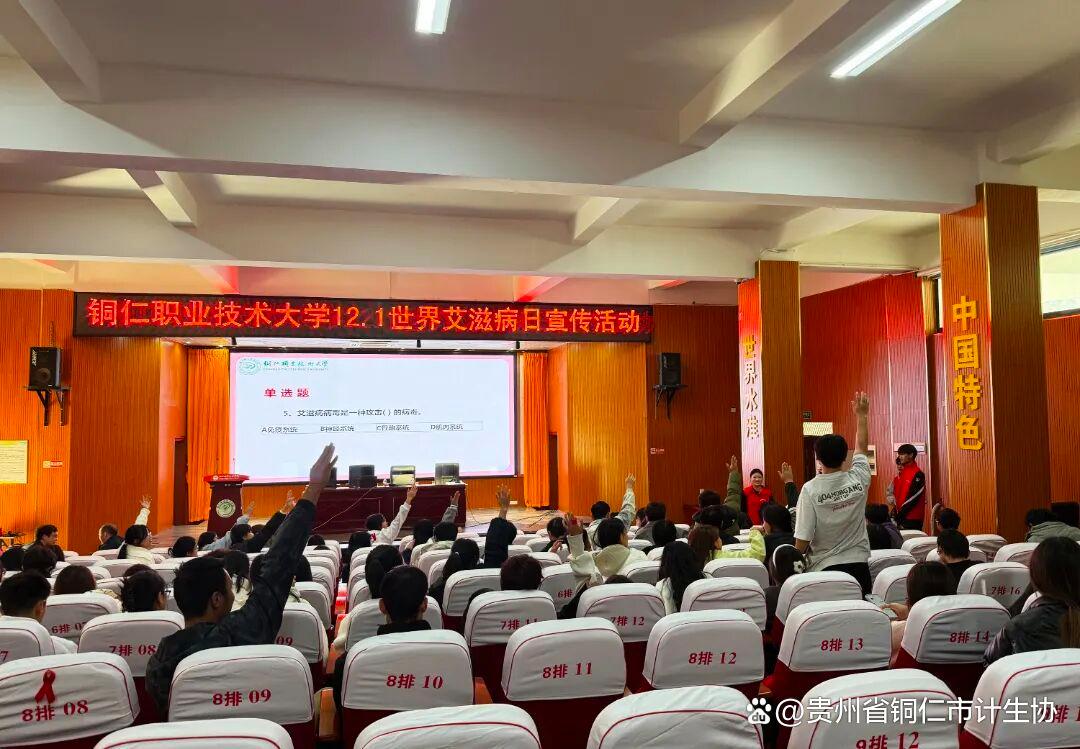 12月1日“世界艾滋病日”当天,铜仁市计生协会携手市卫生健康局、市疾控中心,走进铜仁职业技术大学开展了一场接地气的防艾专题讲座,既有干货满满的讲座,还有紧张有趣的知识竞答和视频教学,让大家在轻松氛围里学到了实用防护技能。